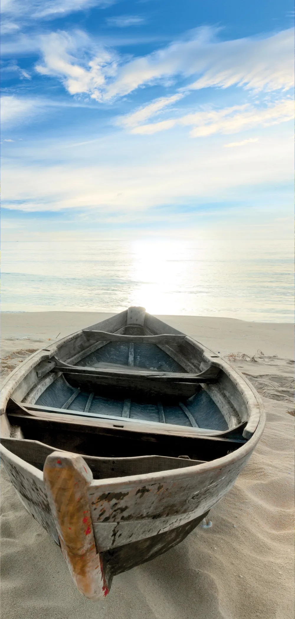 Duschrückwand - Ruderboot am Strand (644), matte Oberfläche, 900x2100 mm