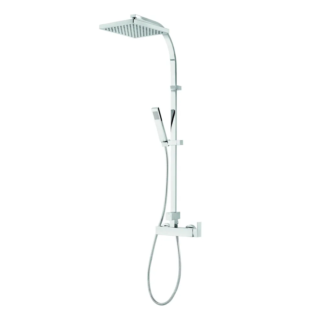 Dieses Duschsystem überzeugt durch eckiges Design, welches durch seine strahlende Optik eine ganz besondere Atmosphäre schafft. Die große Tellerkopfbrause ist feststehend. Für einen rasches Ablauf des Wassers, welches nach dem Duschgang noch nachläuft, jedoch kippbar. So wird langes Nachtropfen der Brause vermieden. Die Handbrause ist an einer höhenverstellbaren Befestigung einhängbar. Über diese bewegliche Halterung kann außerdem der Neigungswinkel des Wasserstrahls bestimmt werden. So können Sie Ihr Duschsystem optimal an Ihren Bedürfnissen ausrichten. Für eine einfach Regelung der Temperatur steht ein Einhebelmischer zur Verfügung, der sich dem kantigen Look der SQUARE-Serie anpasst.