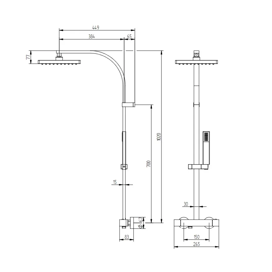 DuschMaster Rain II mit Thermostat, White Style, 265 x 1002 mm