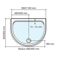 Duschwanne aus Sanitär-Acryl - Halbkreis, Alpinweiß, 960x820 mm