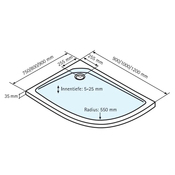 Duschwanne aus Sanitär-Acryl - Rund, Alpinweiß, asymmetrisch rechts, 800x900 mm
