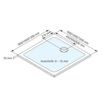 - Lieferumfang 1 x Duschwanne, 1 x Ablauf waagerecht (Ø 90 mm), 5 x Stellfüße