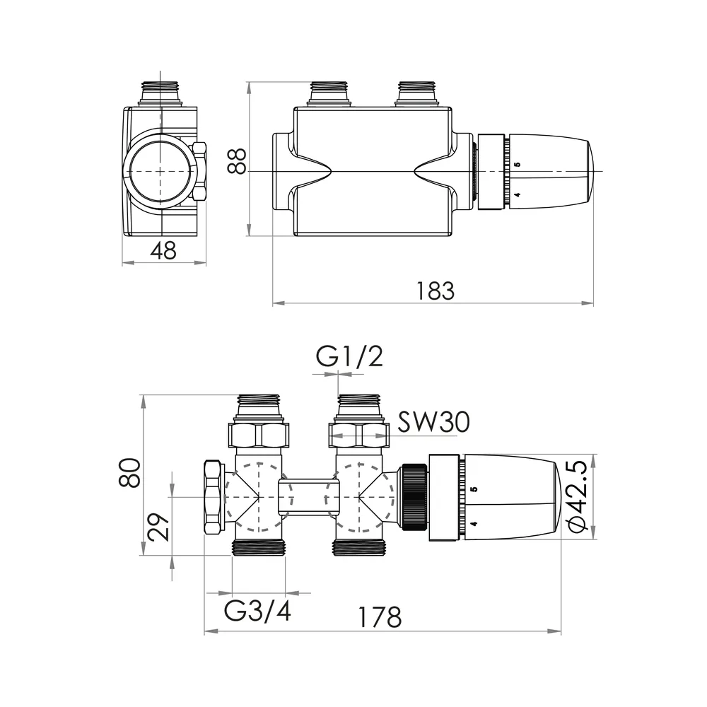 - Anschluss Heizkörper 1/2 Zoll